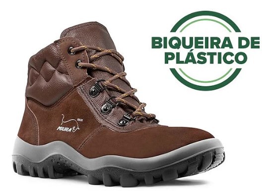 Botina Miura Caramelo (Gran Luxo) é confeccionada com vaqueta nobuck na cor caramelo com tratamento hidrofugado e hidrorrepelente. É forrada com SafetDry sem emendas, para oferecer conforto térmico, absorção de suor e alta performance, e biqueira de plástico. Sua lingueta é fole (o que evita a entrada de resíduos e detritos) em vaqueta e com acolchoamento em espuma, para proporcionar o máximo de conforto. Possui cadarço (atacador) redondo em poliéster, na cor caramelo e detalhes na cor café, com ponteira resinada. Calçado com ilhós de plástico. O cano possui colarinho em vaqueta soft com três gomos acolchoados com detalhe de brasão, o que proporciona conforto e resistência antitorção. O forro da gáspea é em não tecido de alta resistência, e as emendas internas do calçado são de topo, ou seja, sem saliências, o que oferece grande conforto. A palmilha de montagem é costurada no sistema strobel, e a palmilha de conforto é antibacteriana, termoconformada e removível. O cabedal tem costuras simples e duplas feitas com linhas de nylon de alta tenacidade.